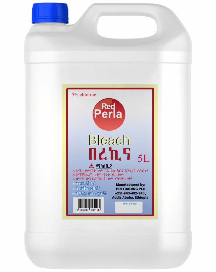 Explore our high-quality bleach manufactured by PDI Trading PLC in Addis Ababa, Ethiopia. This chlorine-based liquid contains Sodium Hypochlorite and Sodium Hydroxide, offering strong disinfecting and whitening properties. Perfect for sanitizing surfaces and whitening fabrics, it should be used with appropriate safety measures, including protective gear and proper ventilation, to ensure effective and safe application.