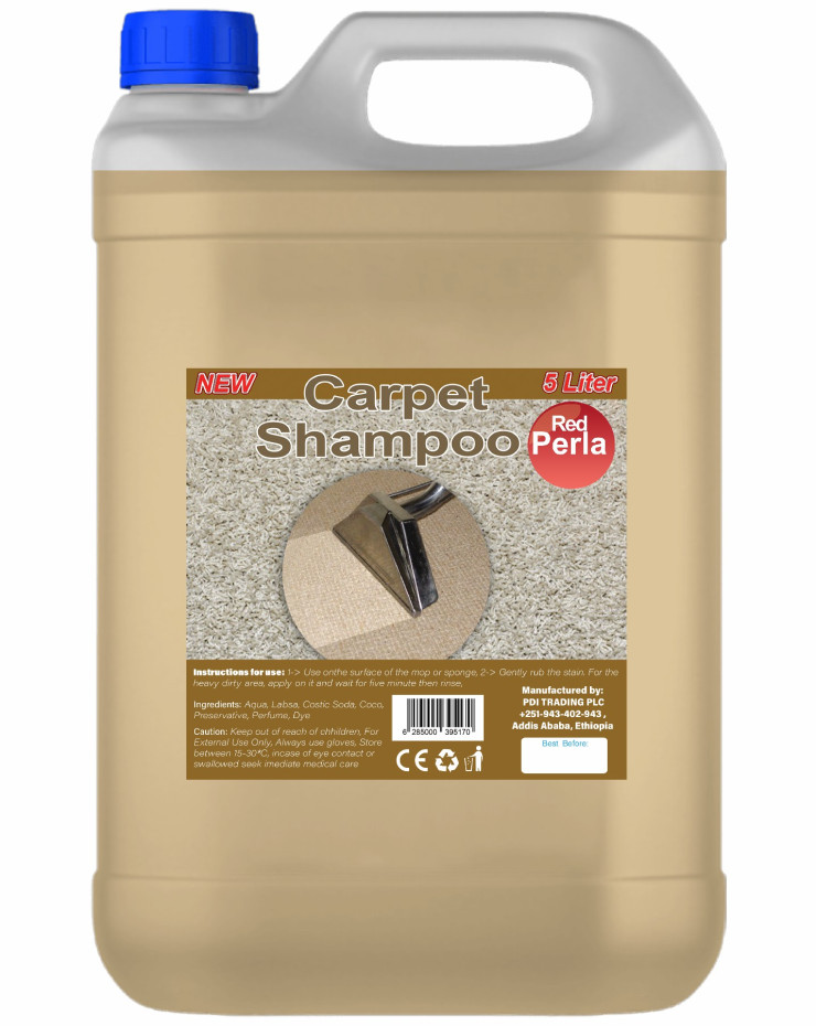 Transform your carpets with the exceptional cleaning power of our premium carpet shampoo, proudly produced by PDI Trading PLC in Addis Ababa, Ethiopia. This advanced formula is meticulously crafted to penetrate deep into carpet fibers, effectively lifting and removing embedded dirt, tough stains, and lingering odors. Whether for residential or commercial use, our carpet shampoo revitalizes carpets, leaving them not only clean but also soft and refreshed. Designed for compatibility with carpet cleaning machines or for manual application, it ensures thorough and efficient cleaning results with every use. Treat your carpets to a rejuvenating deep clean and restore their original beauty with our trusted and effective shampoo formula.