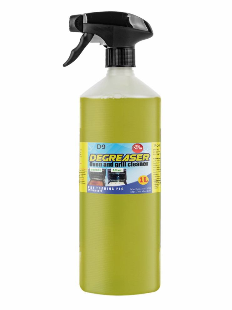 Degreaser oven and grill cleaner Experience the formidable cleaning power of our professional-grade degreaser, meticulously formulated by PDI Trading PLC in Addis Ababa, Ethiopia. This versatile solution is specially designed to tackle stubborn grease, oils, and grime on various surfaces. Ideal for kitchens, workshops, and industrial settings, our degreaser effectively breaks down and removes tough stains, ensuring surfaces are thoroughly cleaned and restored to their original condition. With a concentrated formula that offers exceptional cleaning efficiency, it provides a reliable solution for maintaining cleanliness and hygiene in demanding environments. Suitable for use on floors, countertops, machinery, and more, our degreaser is a trusted choice for achieving sparkling clean results with minimal effort.